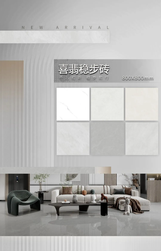 800x800mm尺寸適配各個戶型空間設計,運輸和入戶更為方便,鋪貼施工更加簡單。